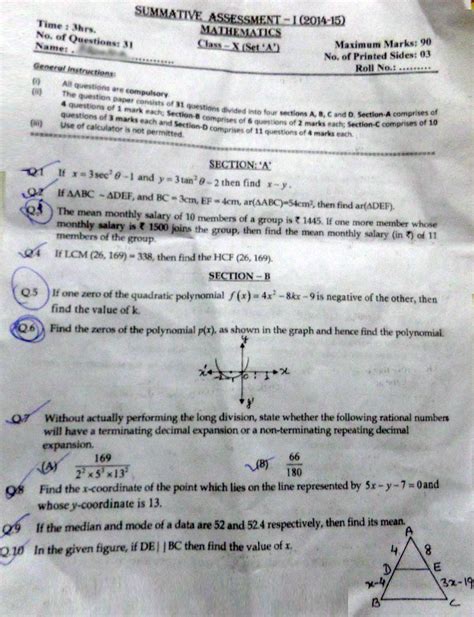 sample papers for class 10 cbse sa1